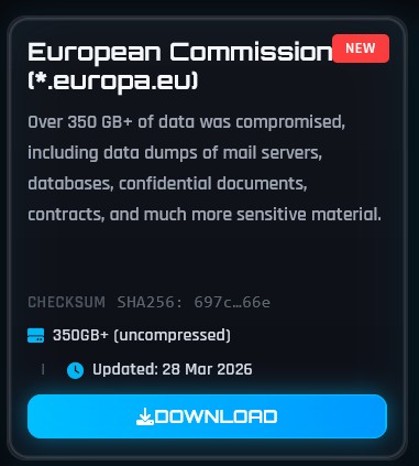 Hackers claiming to be from the ShinyHunters group say they have breached systems linked to the European Commission and released more than 350 GB of data. The claim appeared on the group’s dark web site earlier today, where they also post material linked to earlier incidents involving enterprise platforms.